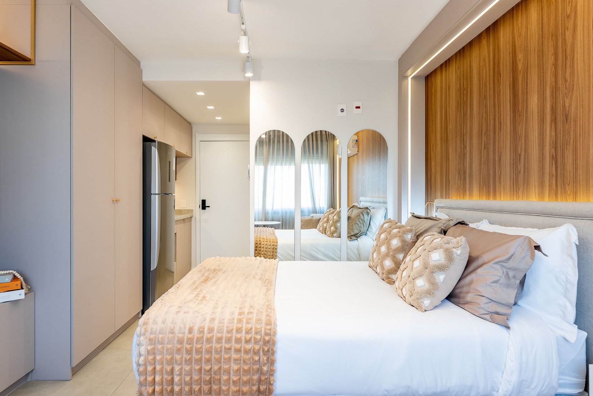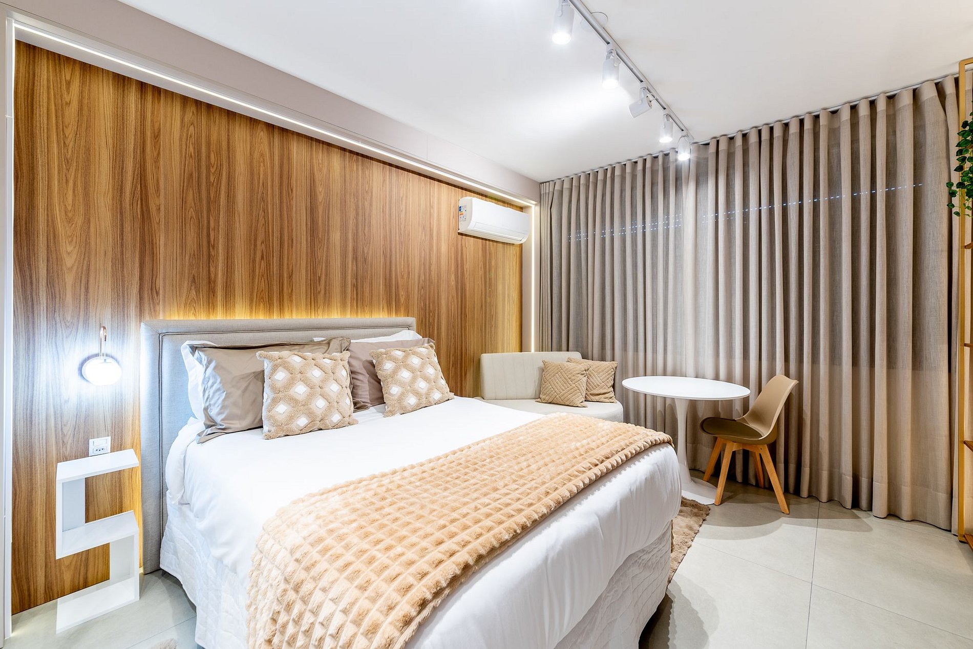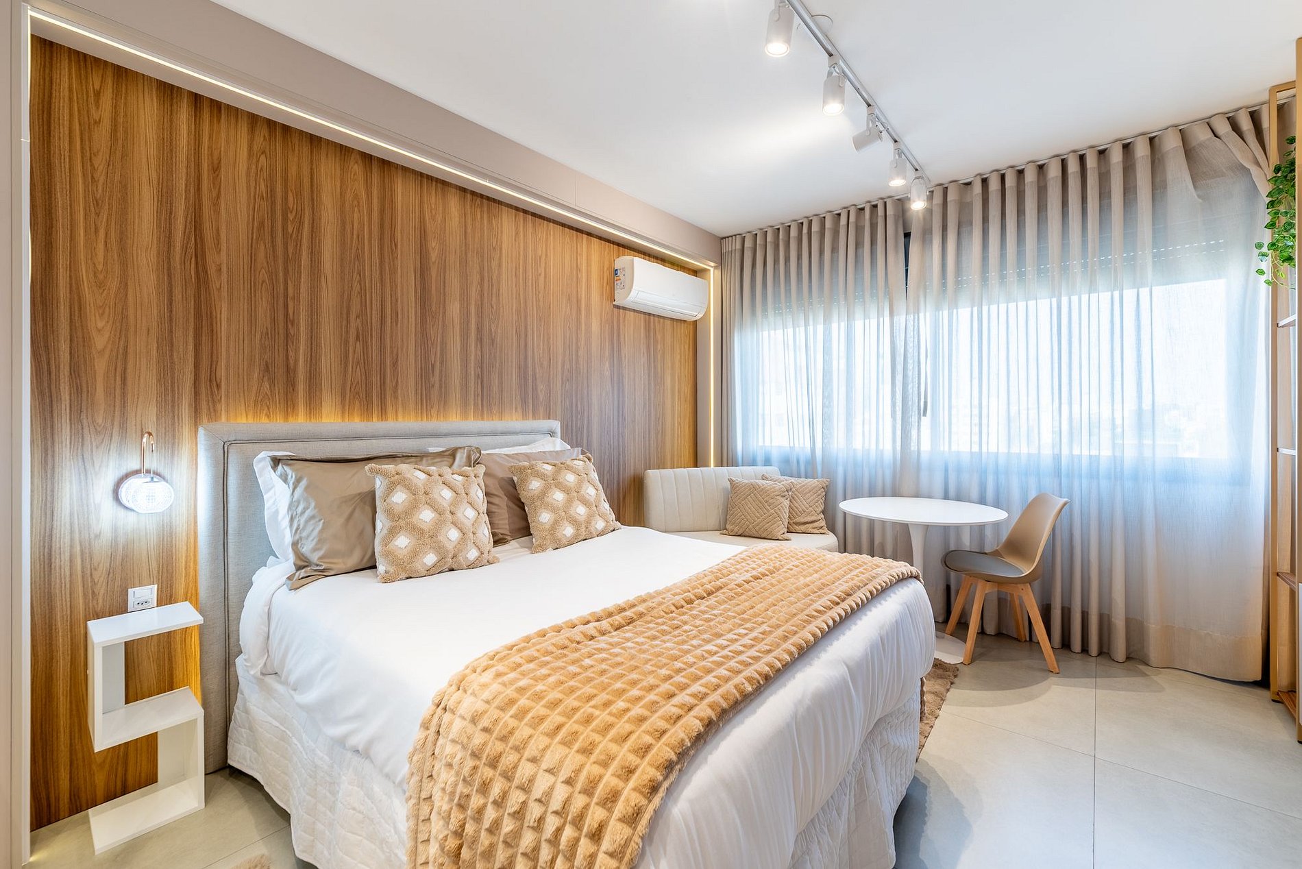 Studio moderno e aconchegante no 7º andar do Skyline Parque Moinhos, em Porto Alegre. Decorado em tons neutros, oferece cama de casal, ar-condicionado, Smart TV, Wi-Fi e cozinha completa com eletros. Self check-in por fechadura digital, portaria 24h e vaga de garagem rotativa. Localização privilegiada, próxima ao Parcão, Shopping e às melhores opções de gastronomia da cidade.