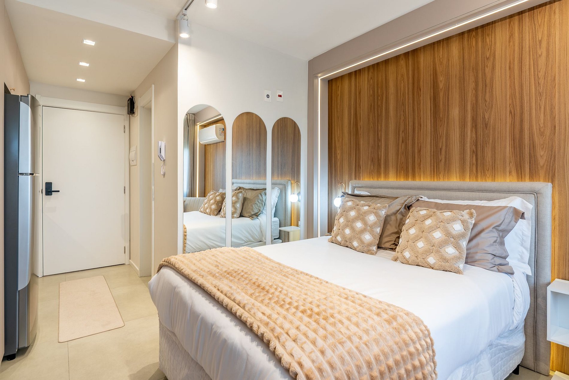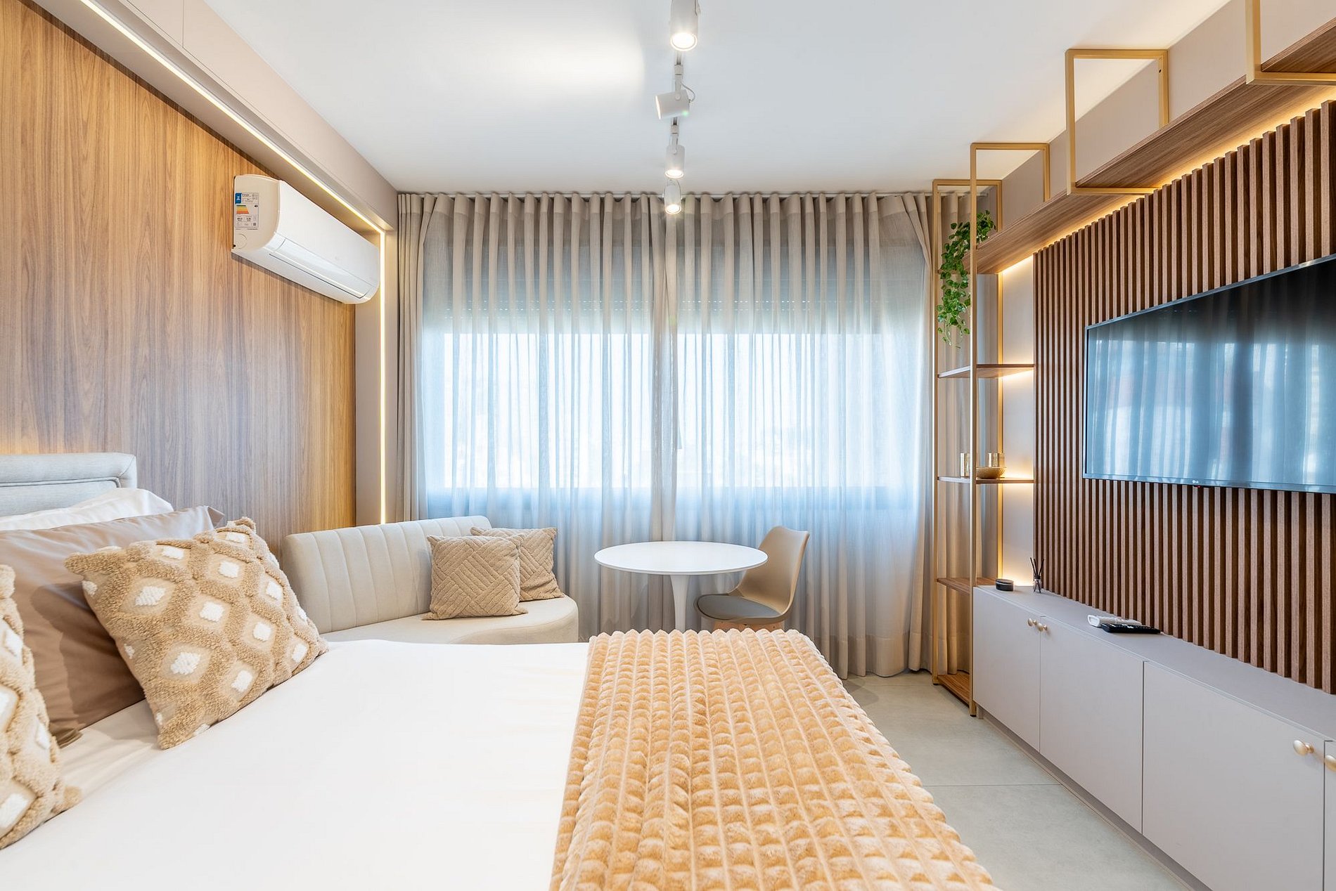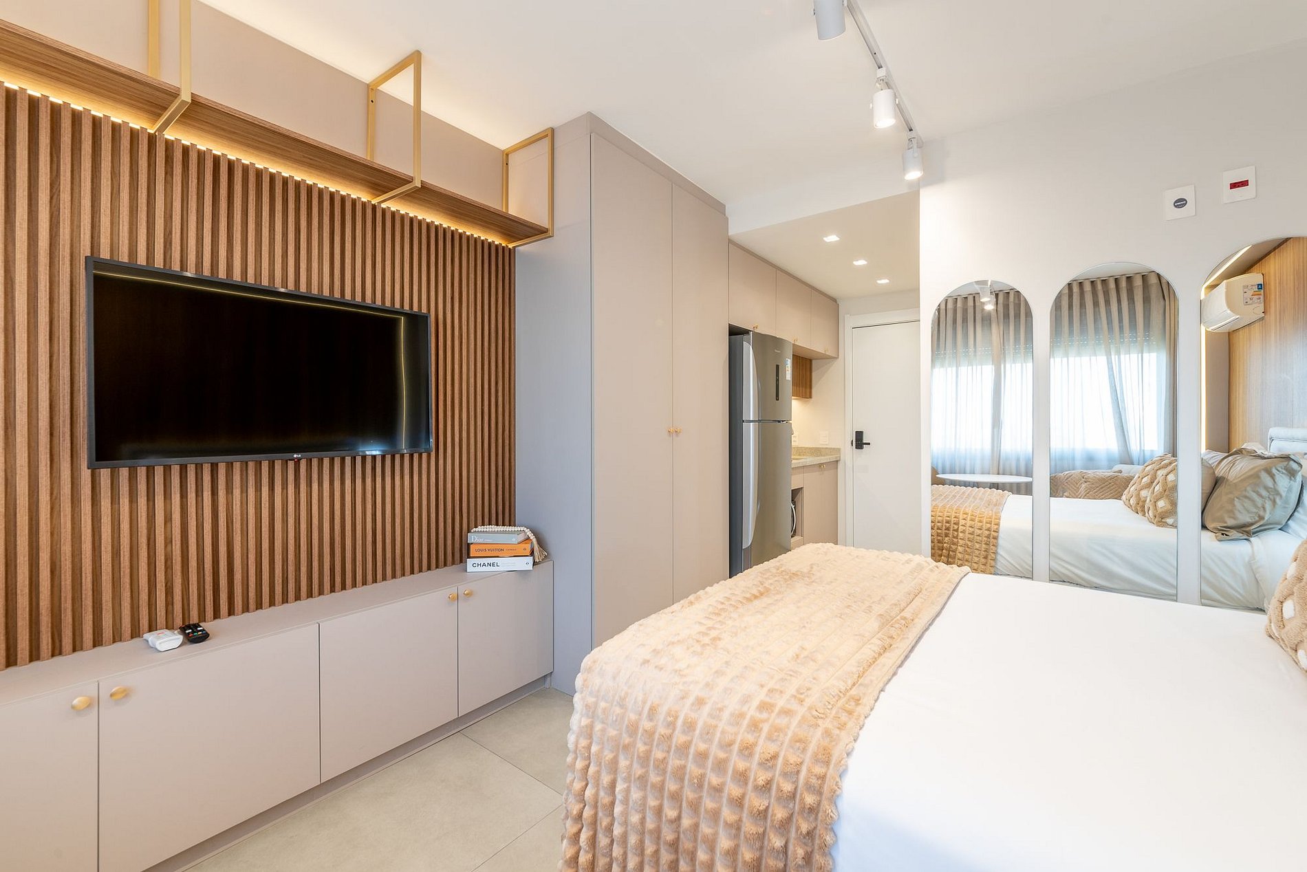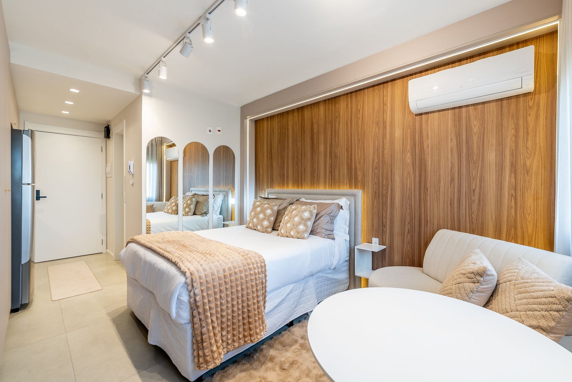 Studio moderno e aconchegante no 7º andar do Skyline Parque Moinhos, em Porto Alegre. Decorado em tons neutros, oferece cama de casal, ar-condicionado, Smart TV, Wi-Fi e cozinha completa com eletros. Self check-in por fechadura digital, portaria 24h e vaga de garagem rotativa. Localização privilegiada, próxima ao Parcão, Shopping e às melhores opções de gastronomia da cidade.