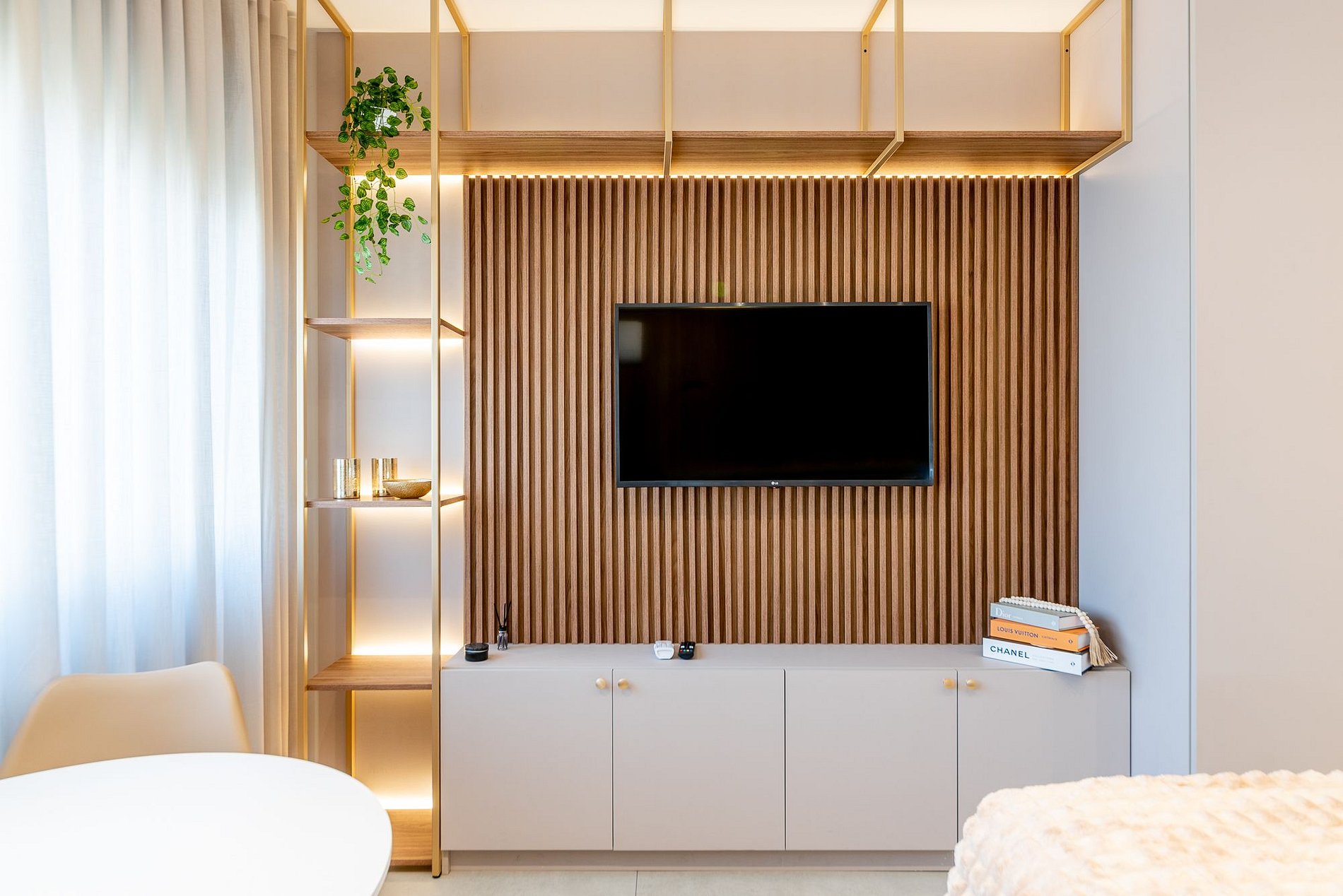 - Persianas nas janelas e cortina