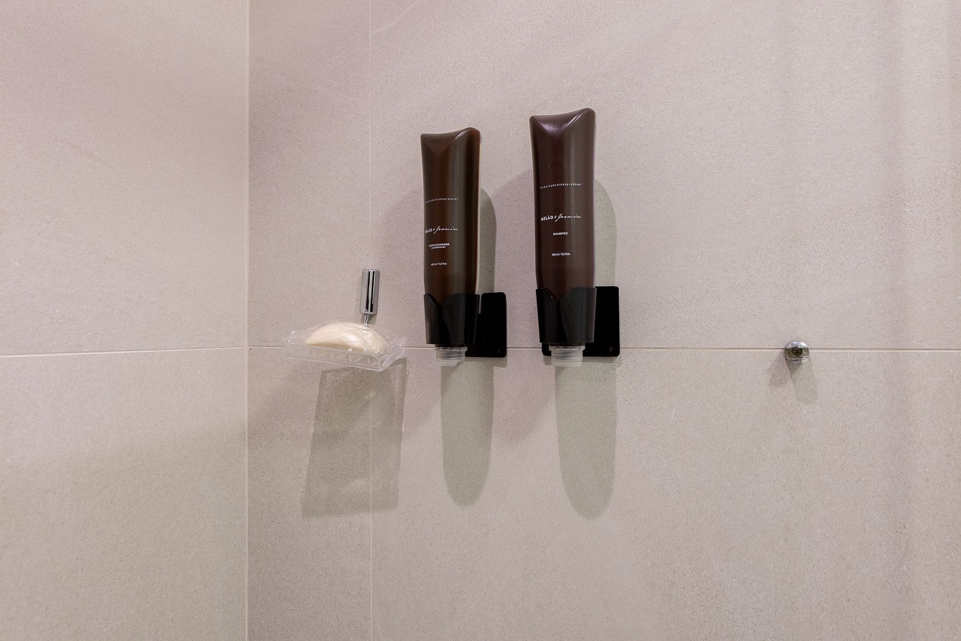Toalhas e amenities (shampoo, condicionador, sabonete e papel higiênico)